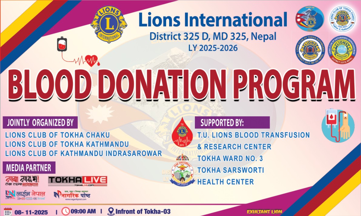 टोखा टाइम्स, २१ कार्तिक । लायन्स क्लब अफ टोखा चाकु, टोखा काठमाडौं र काठमाडौं इन्द्रसरोवरको संयुक्त आयोजनामा टोखामा बृहत रक्तदान […]